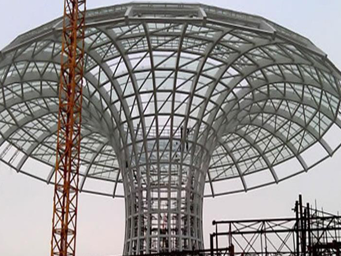 二、球形网架结构因其结构新颖,受力合理,自重轻、用钢量低等优点。如大型体育场馆球形昌平螺栓球网架、公共场馆球形网架、电厂昌平螺栓球网架、水泥工业球形网架、仓储物流球形网架、昌平干煤棚工业球形网架、昌平收费站昌平加油站球形网架、展览中心、影剧院、商场、航站楼、候车厅、工厂昌平车间、仓库、电视塔等球形螺栓球节点网架。国内球形网架结构主要分为:昌平焊接球节点网架及螺栓球节点网架两种。螺栓球节点网架其构件工厂内加工量较大,现场安装便捷,适用于现场工期紧,昌平施工条件、用电量受制约,网架形状复杂、昌平杆件定位困难的异形结构。螺栓球节点球形网架系统基本由昌平杆件、螺栓球、支撑支座等组成。按照节点形式可分为交叉昌平桁架体系、四角锥体系、三角锥体系等。支撑方式多为固定支座支撑。对于大面积、大跨度及有特殊受力或伸缩要求的网架结构可采用橡胶支座、滑移支座、球铰支座等支撑形式,以满足结构自身的受力稳定、均衡,便于内力释放等设计要求。